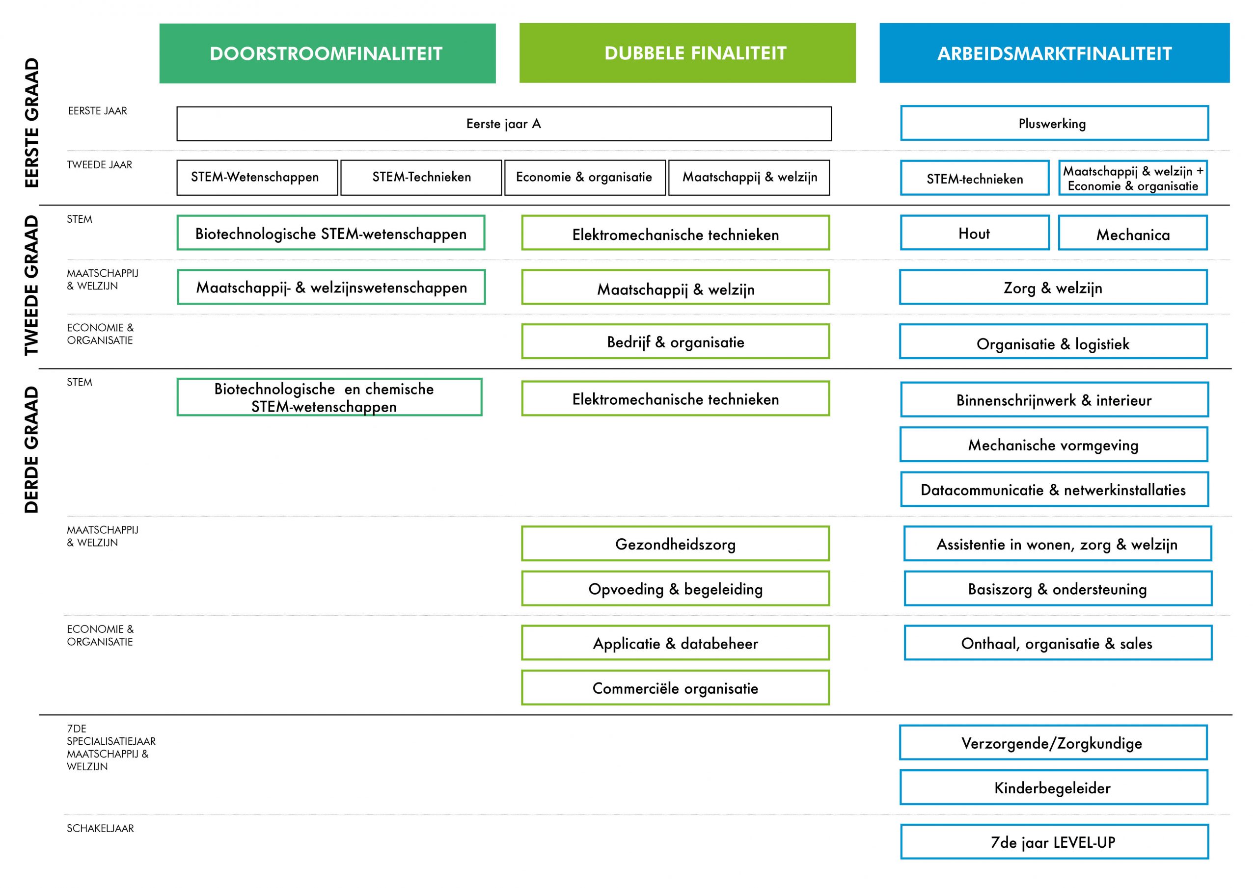 Arbeidsmarktfinaliteit: (Vroeger BSO) je wordt klaargestoomd voor een uitdagende job op de arbeidsmarkt na je studie in het secundair onderwijs. Stages en werkplekleren vormen hierbij een belangrijk onderdeel van je opleiding.